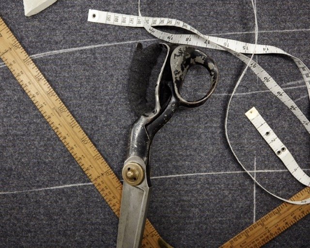 Caption: "Alfred Dunhill has built its reputation on uncompromising standards in menswear, and Bourdon House is built around the cutting table. A private consultation with the in-house tailor, and a range of over 300 cloths for suits and 450 fabrics for shirts, ensure that a truly personal look can be crafted. Custom services are also on offer, from embossing to hand built leather sets – whether that’s for luggage or automotive interiors. Each bespoke leather piece is made entirely by one artisan"
